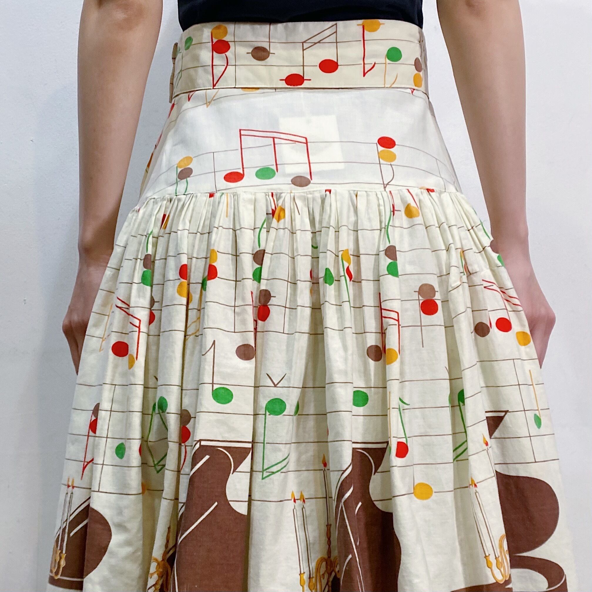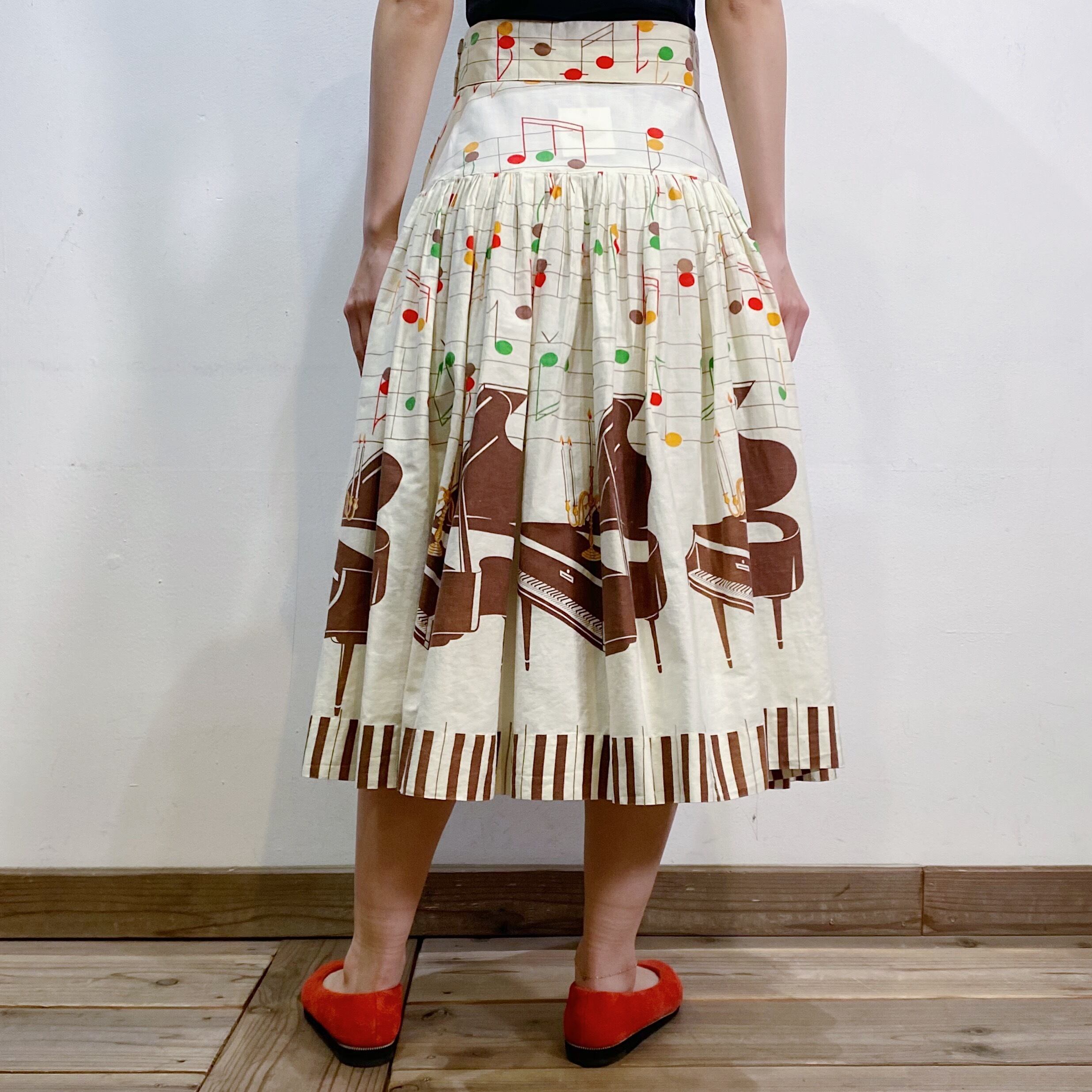 音符やピアノ・鍵盤の柄がスペシャルに可愛い、50年代のノベルティースカートです。
