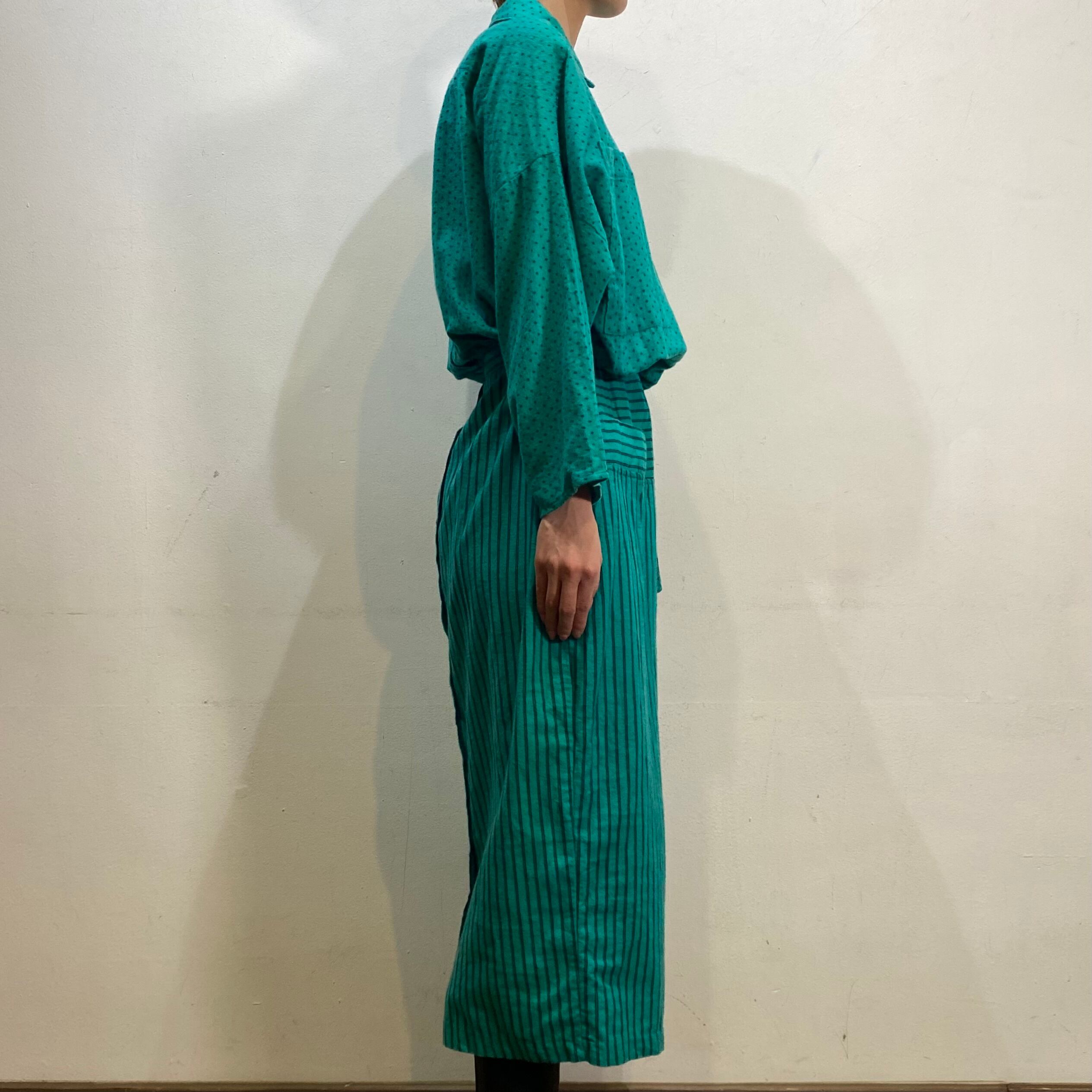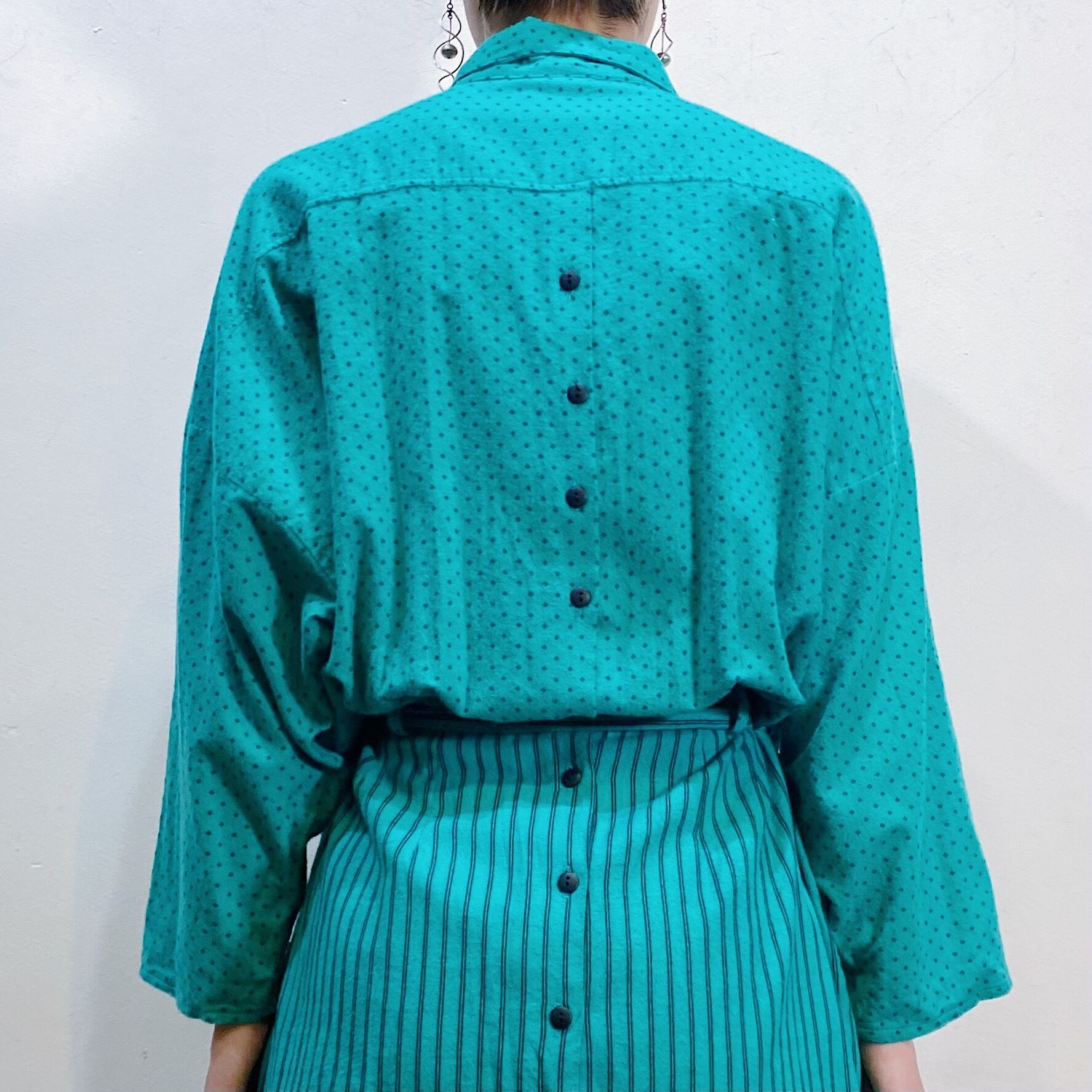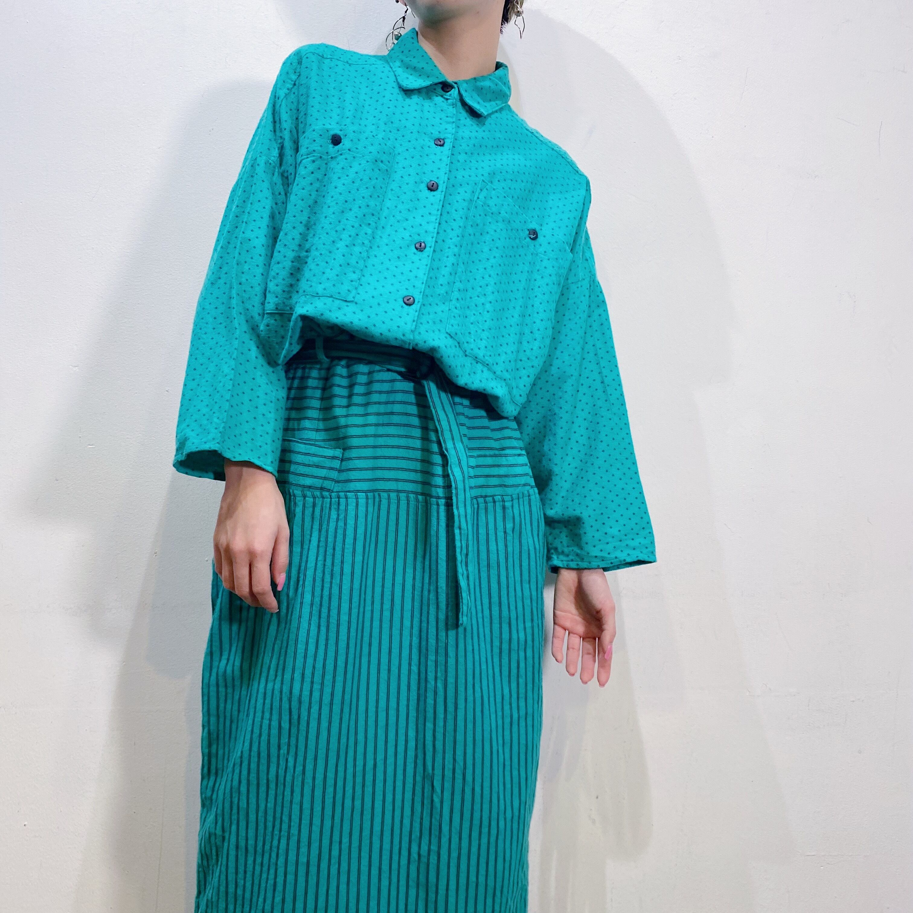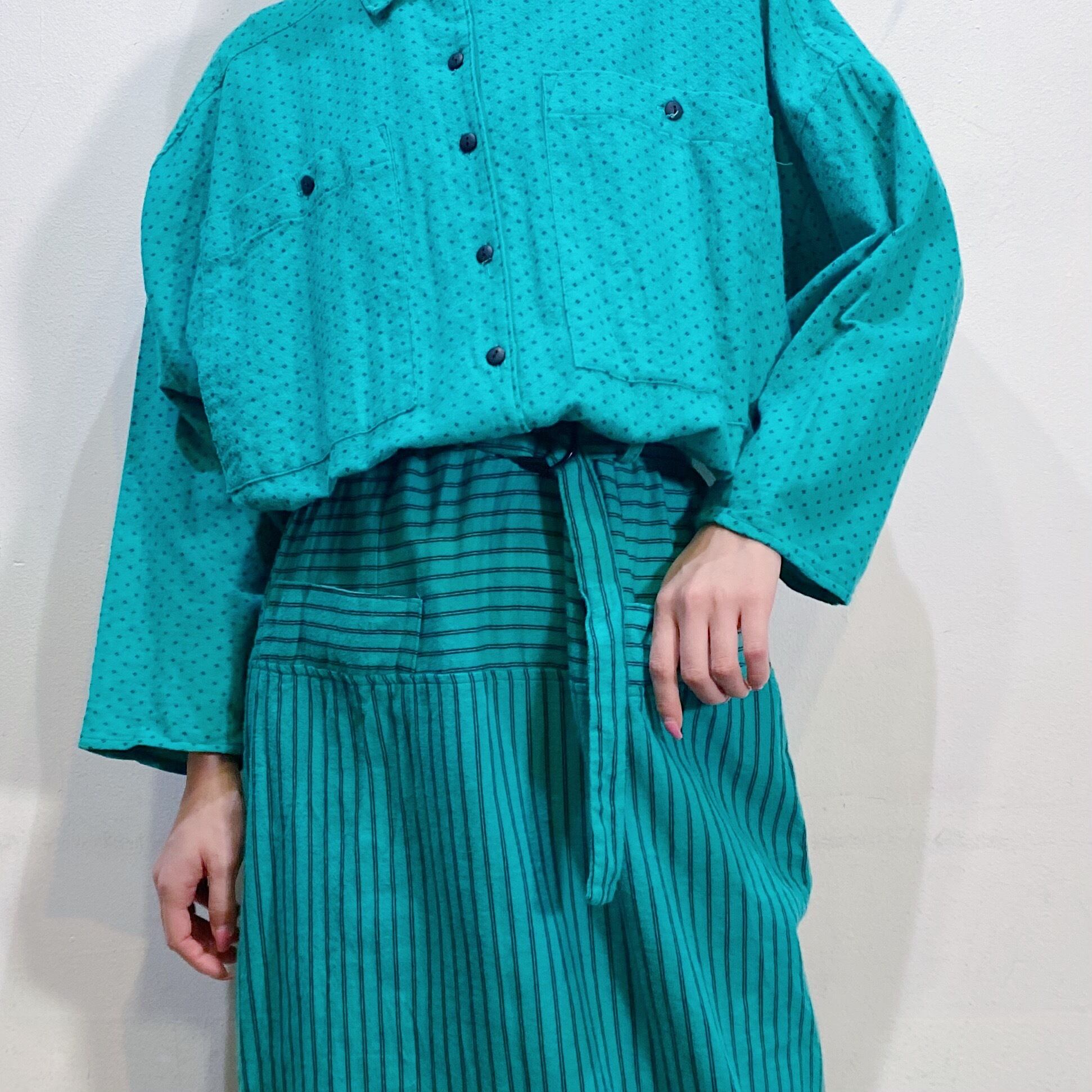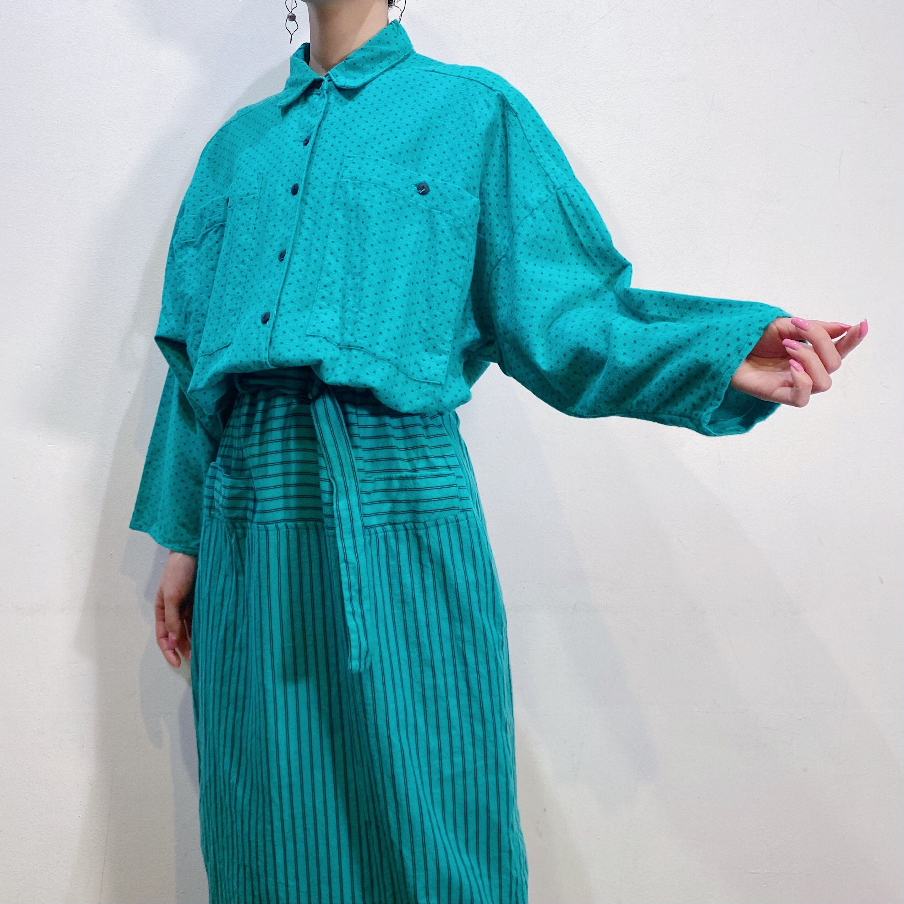 上はドット、下はストライプの切り替えが楽しい80年代のシャツワンピースです。