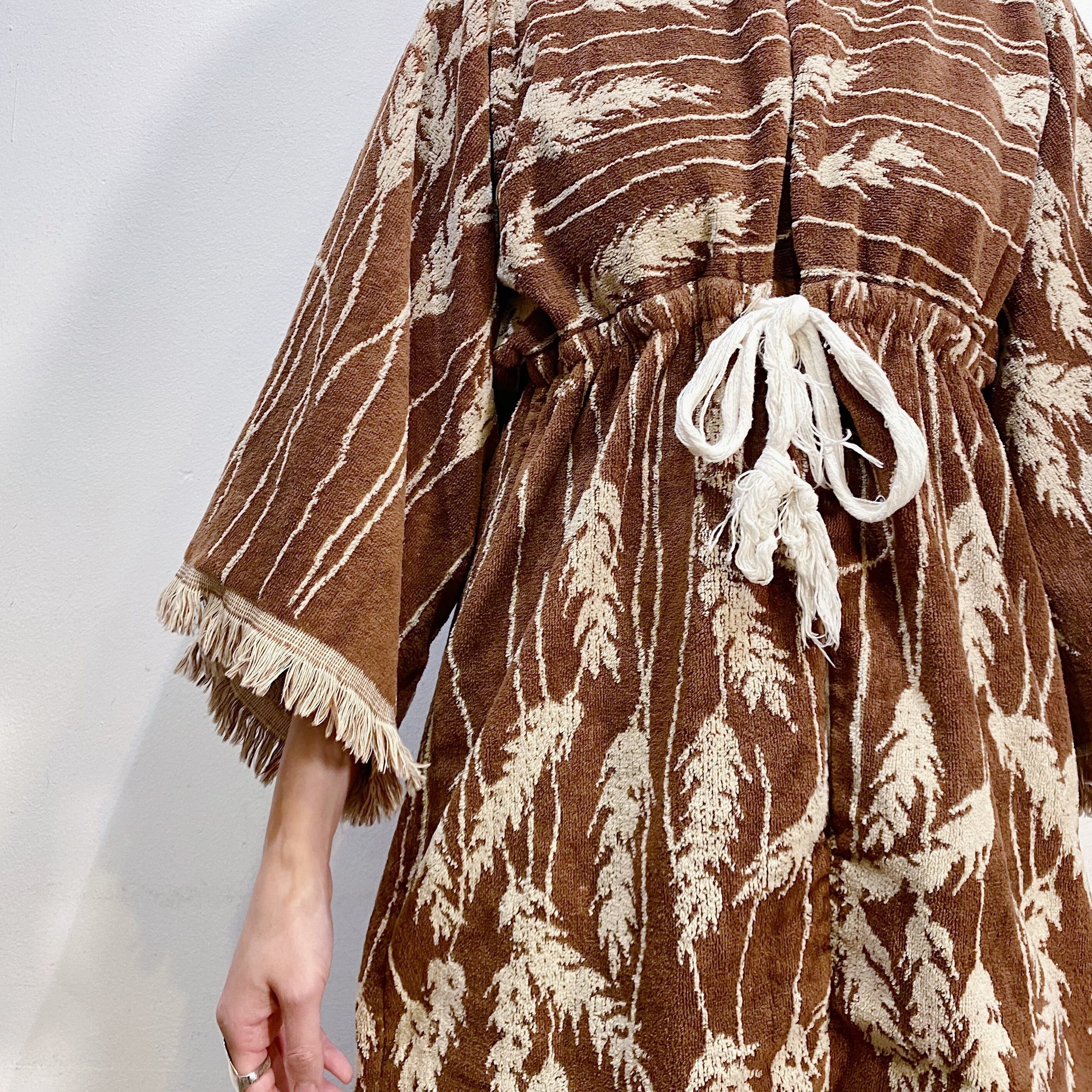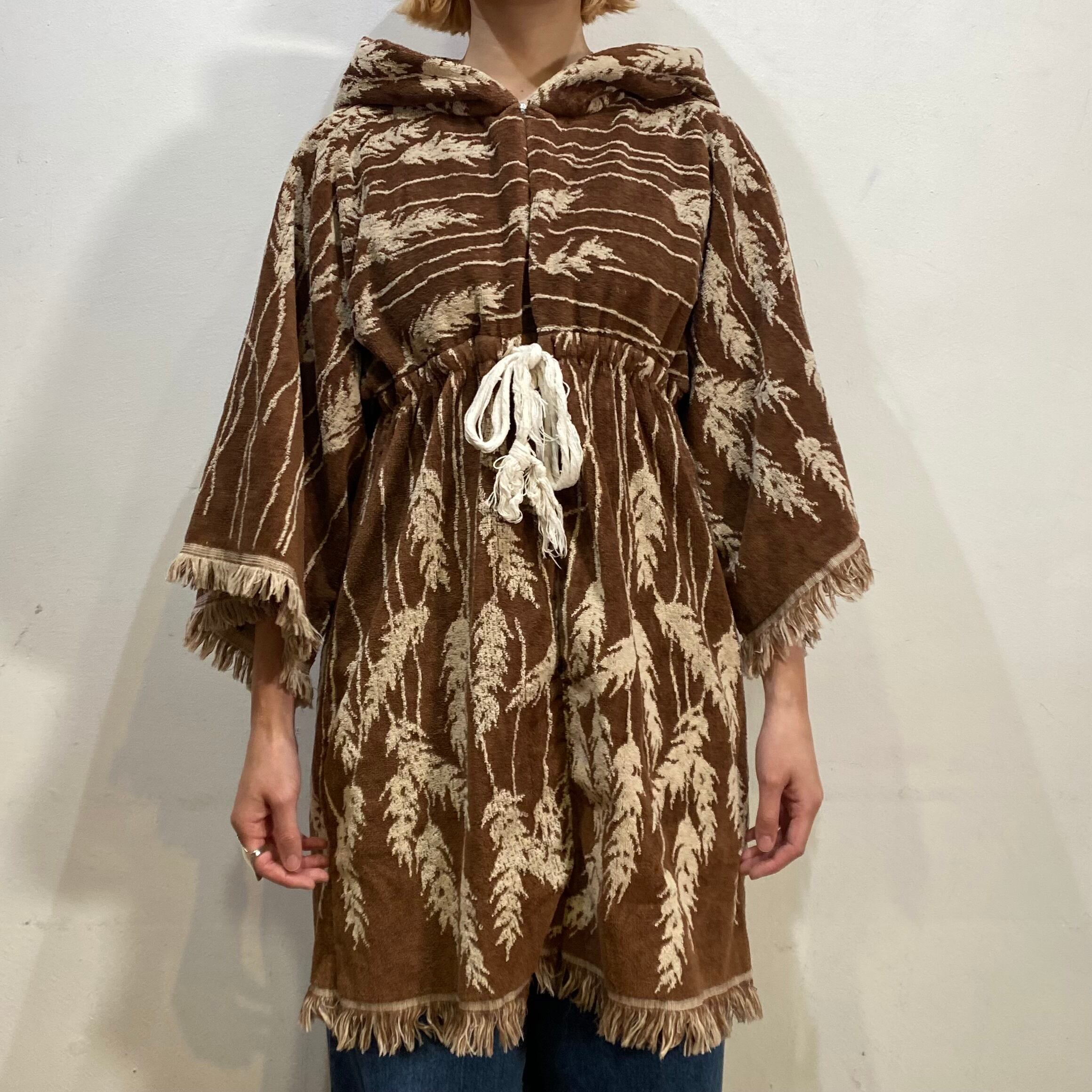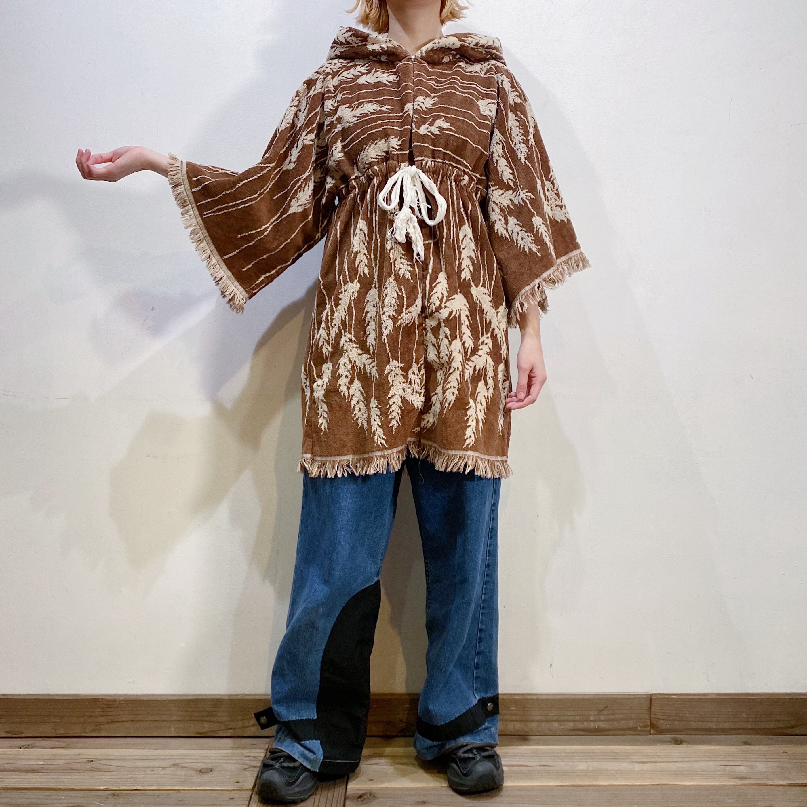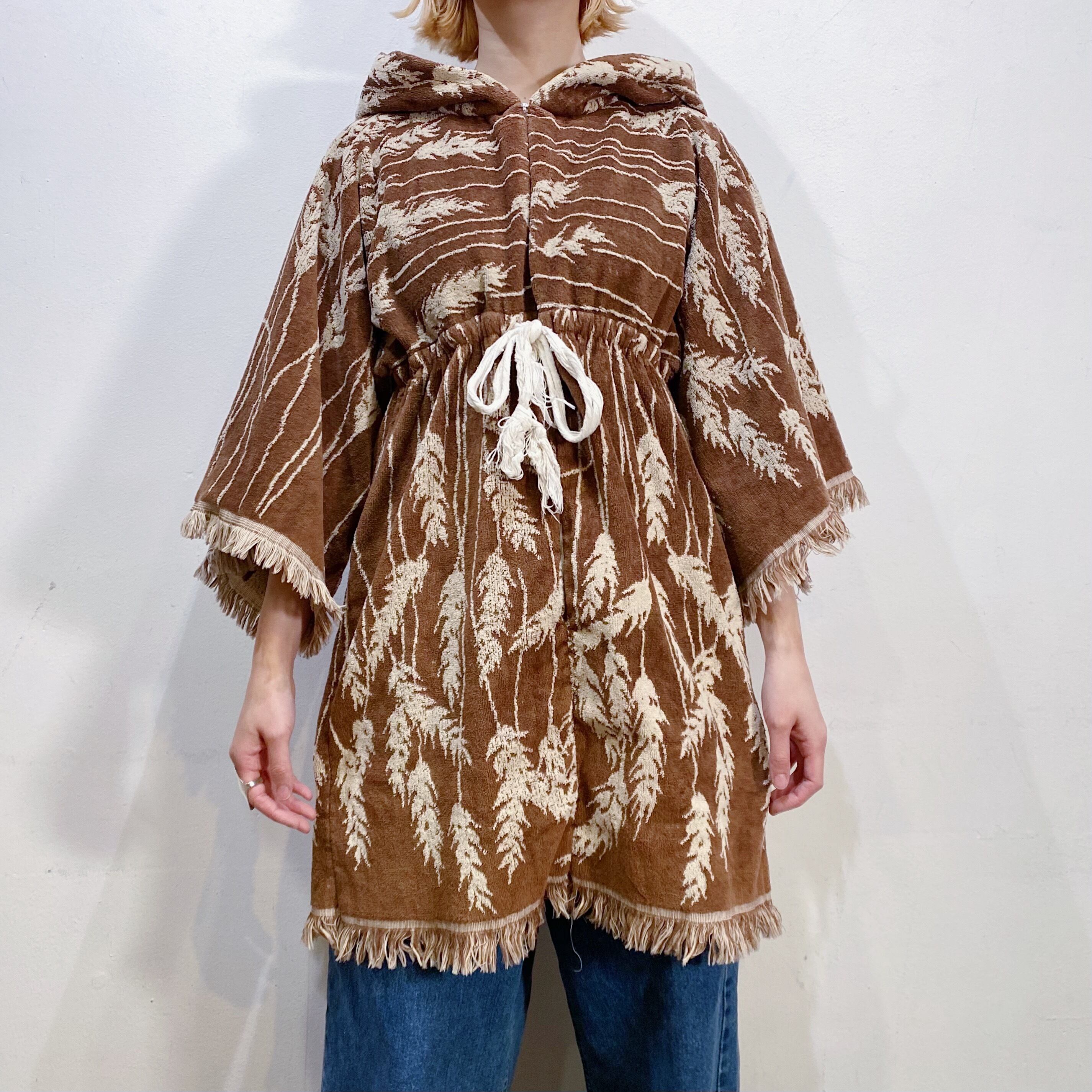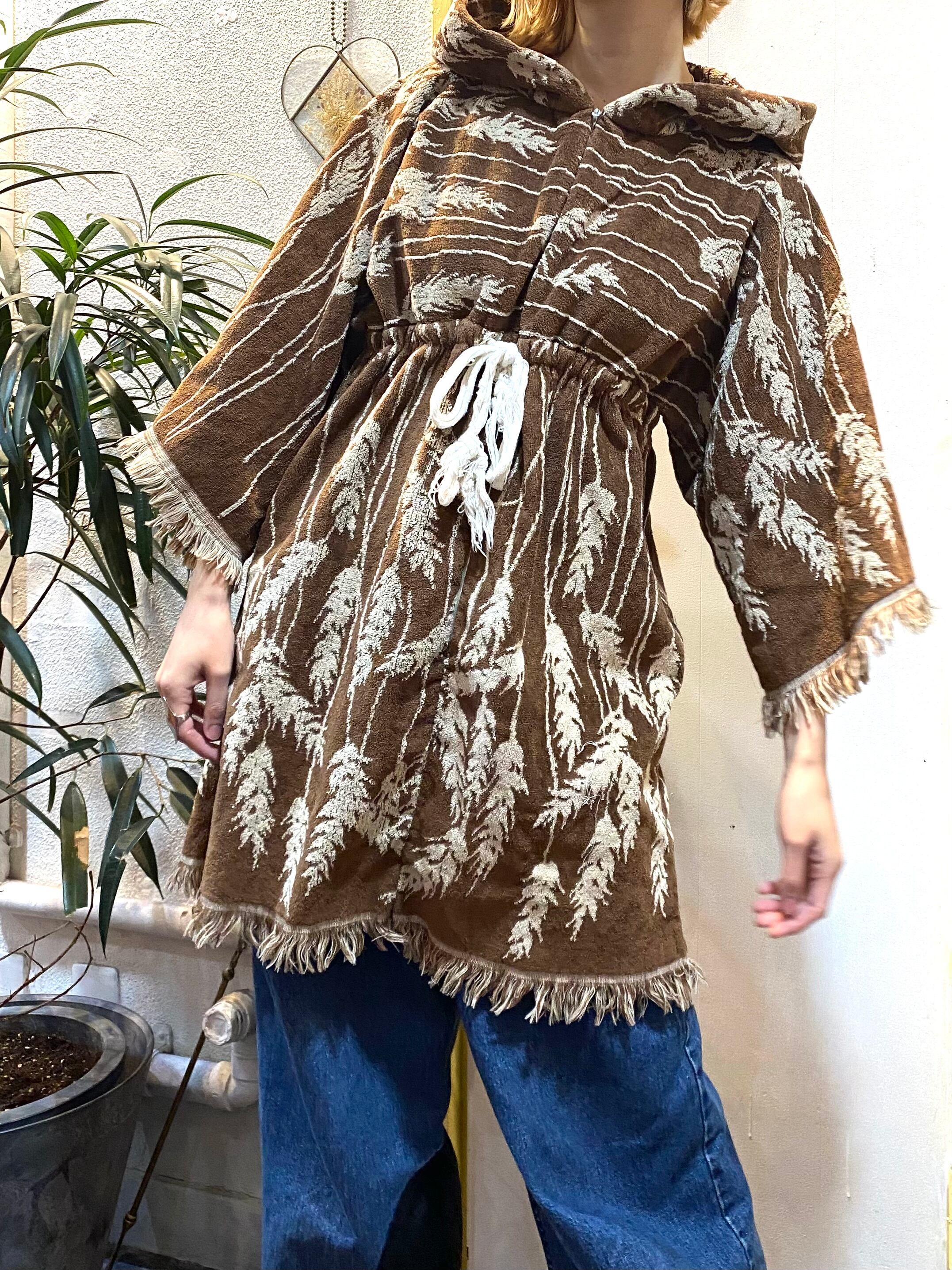 ブラウンベースで大人可愛い、70年代のパイル地のトップスです。