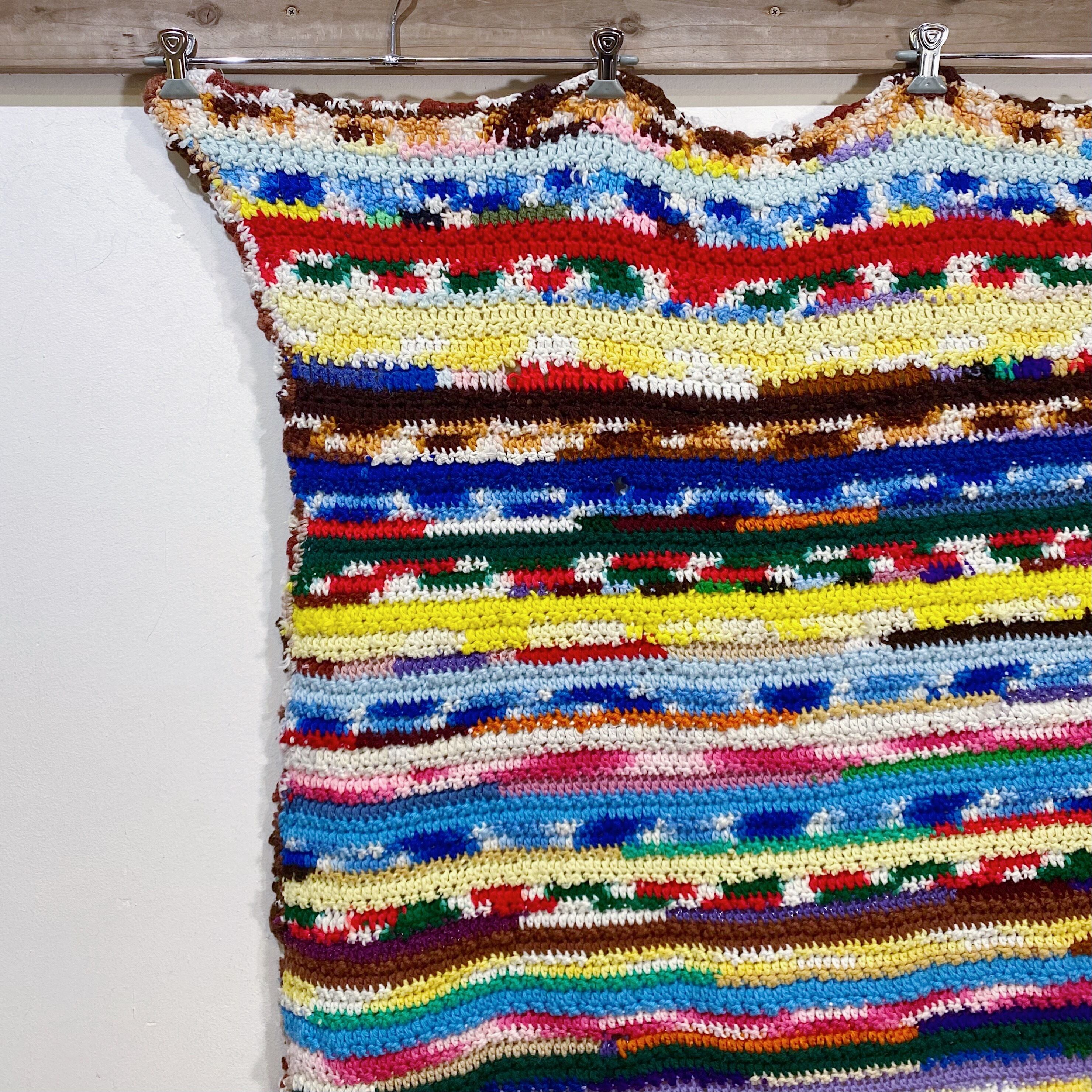 カラフルなストライプが可愛い、70年代のニットブランケットです。
