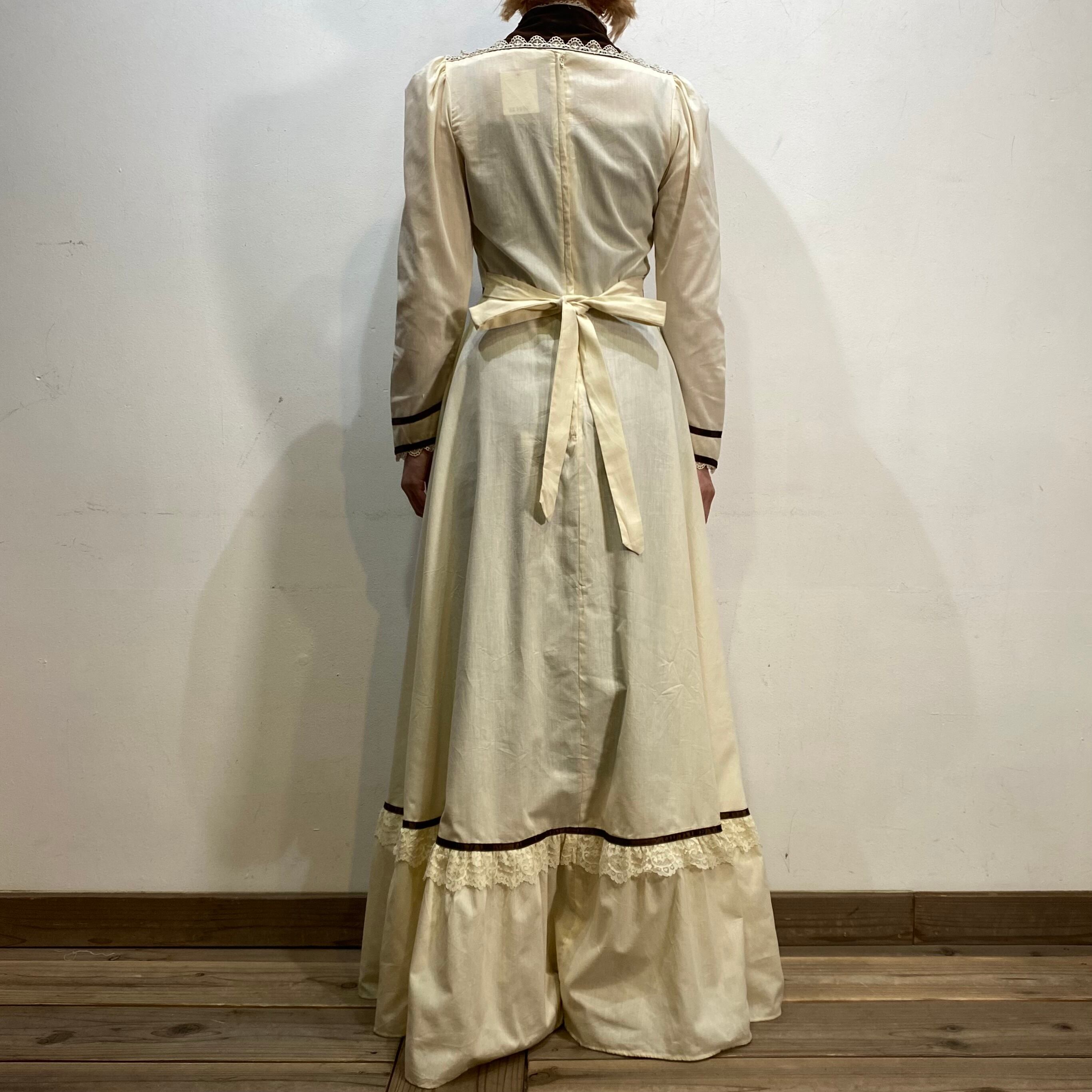ホワイト×ブラウンの色合わせで着こなしやすく、レースやサテンテープの装飾もとってもキュート。