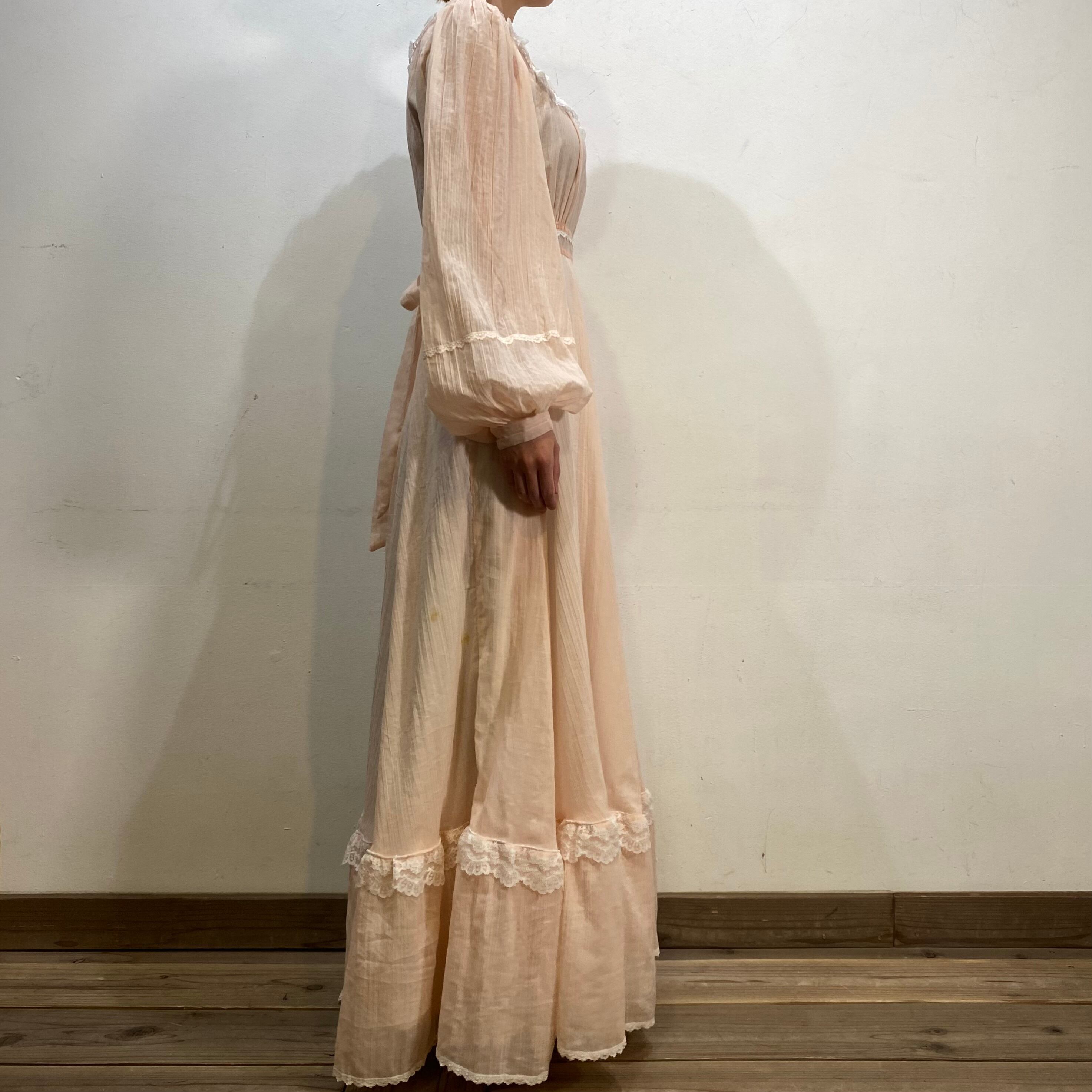 淡いピンクの色合いが可愛い、70年代のGUNNESAXのワンピースです。