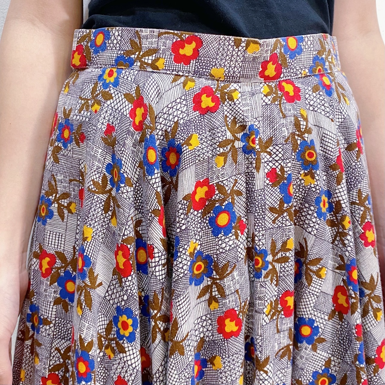 たくさんの生地を用いて作られたボリュームのあるフレアシルエットが魅力の一枚。