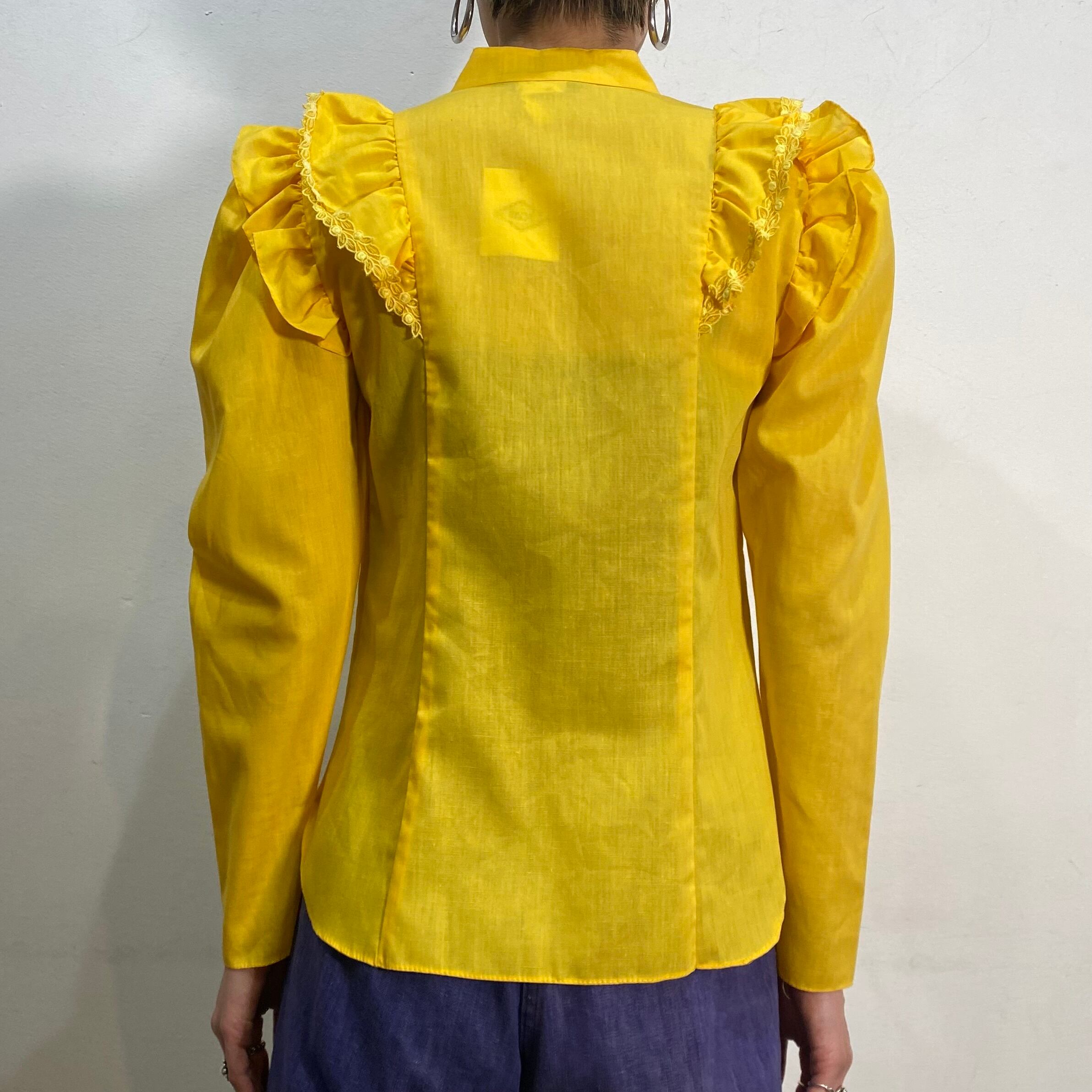 色鮮やかなハッピーイエローカラーが可愛い、80年代の長袖シャツです。