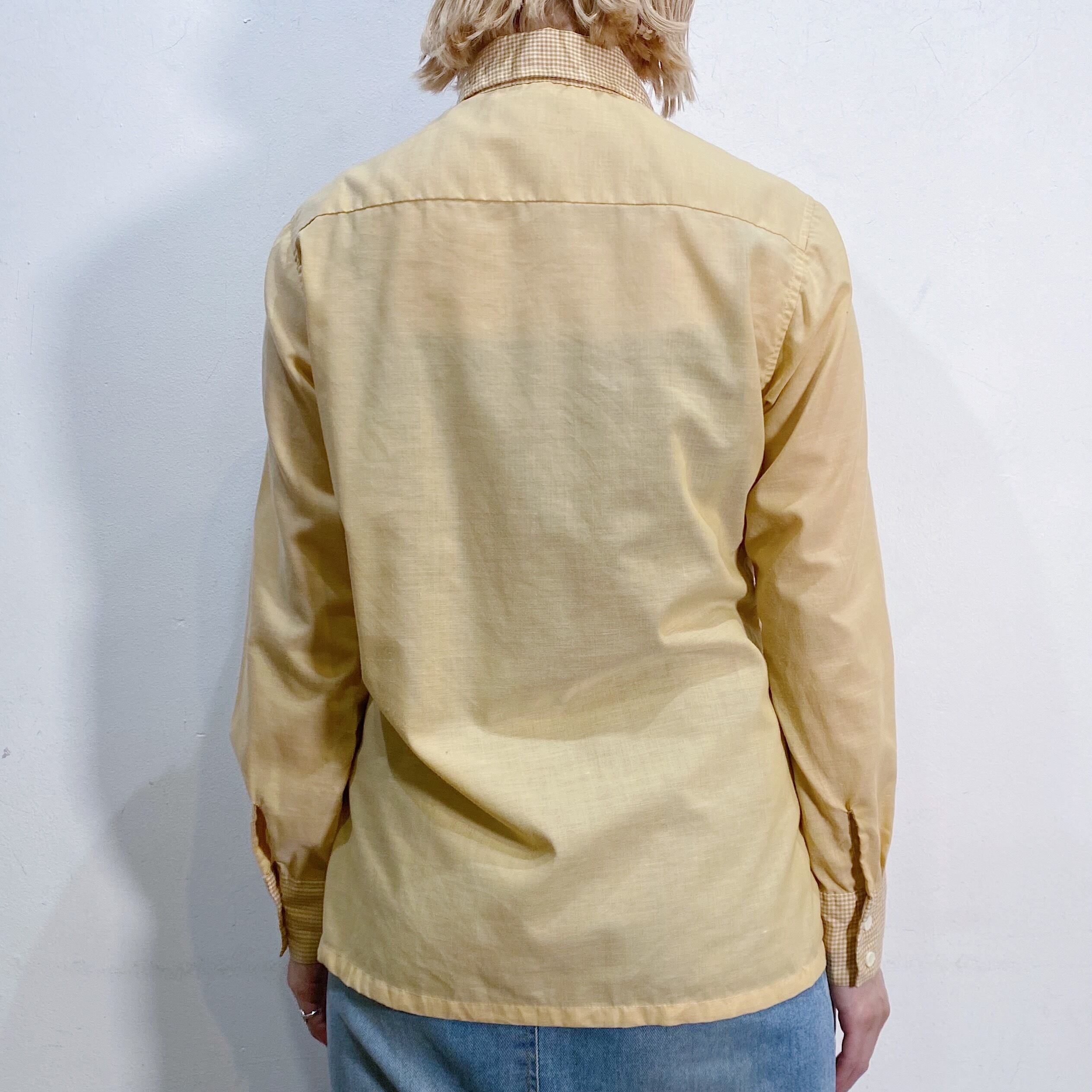 こっくりとしたイエローとギンガムチェックの切り替えが可愛い、70年代の長袖シャツです。