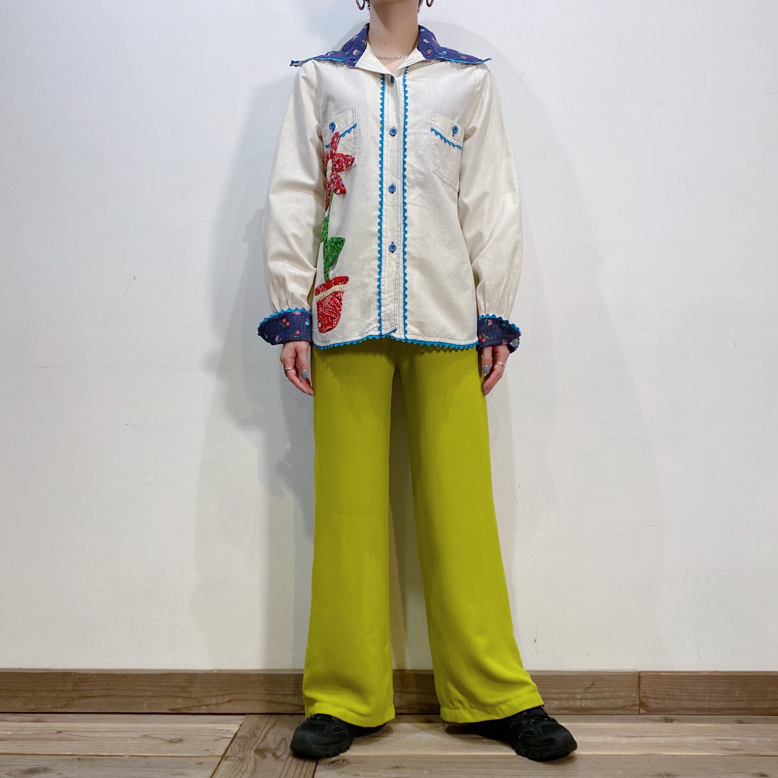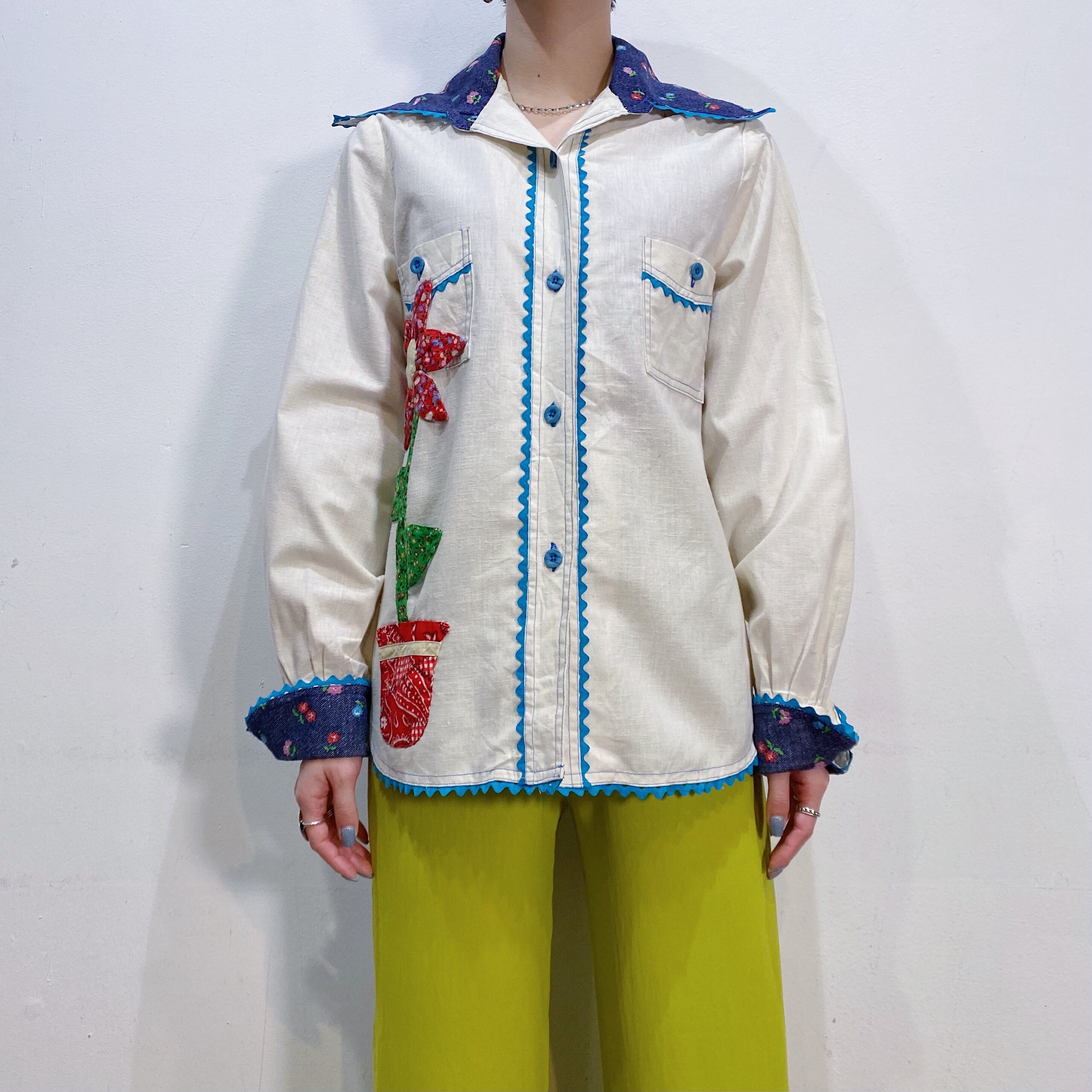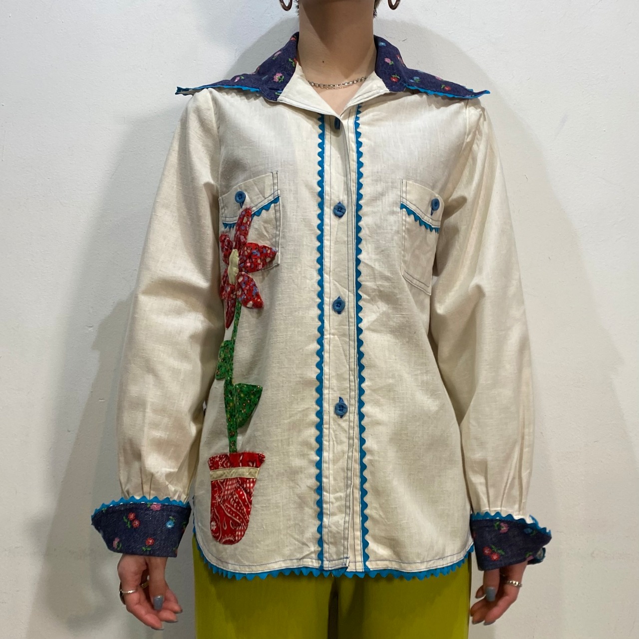 1970年代に流行したハンドメイドのリメイクシャツです。