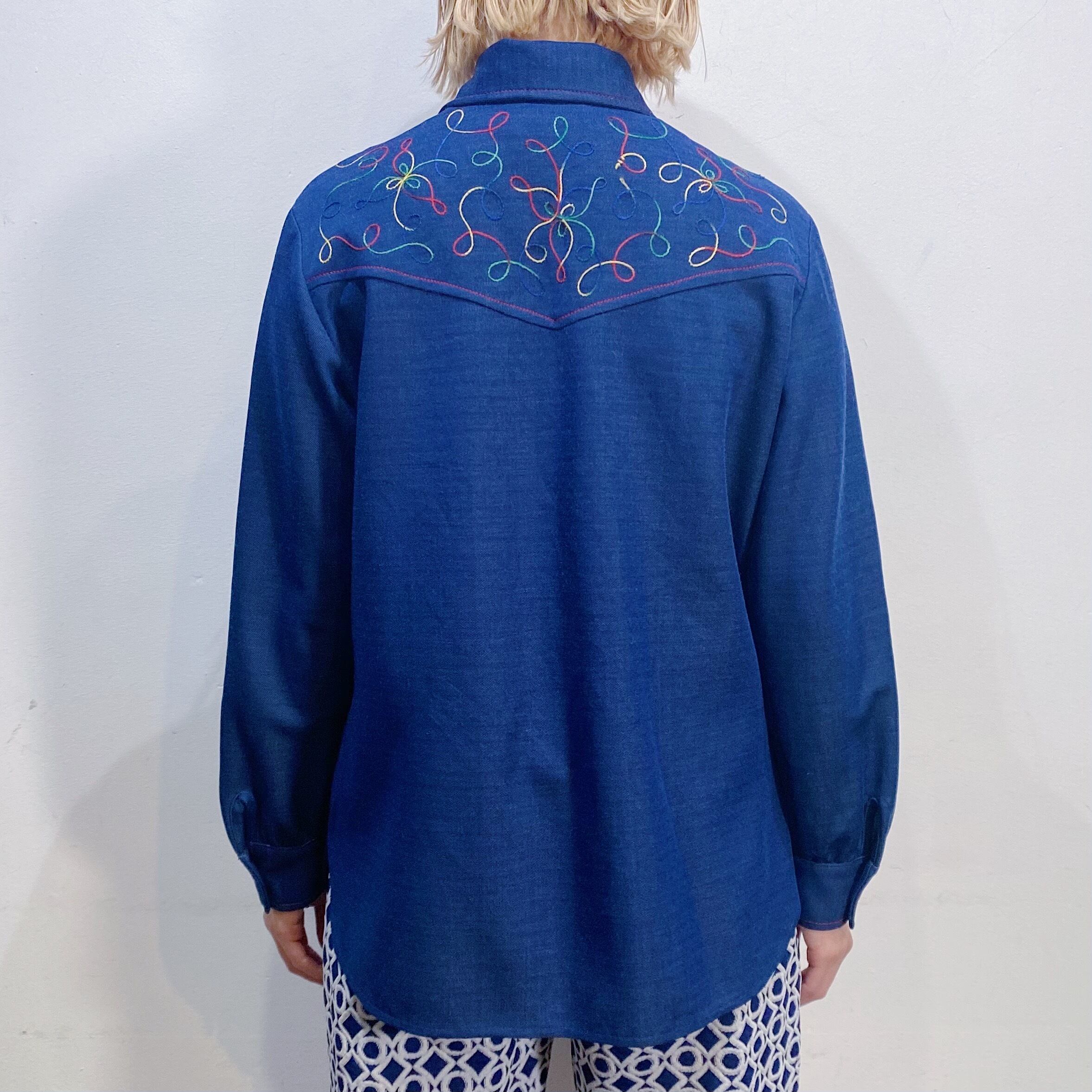 胸元のレインボーカラーの刺繍デザインがとても可愛い。70年代の長袖シャツです。