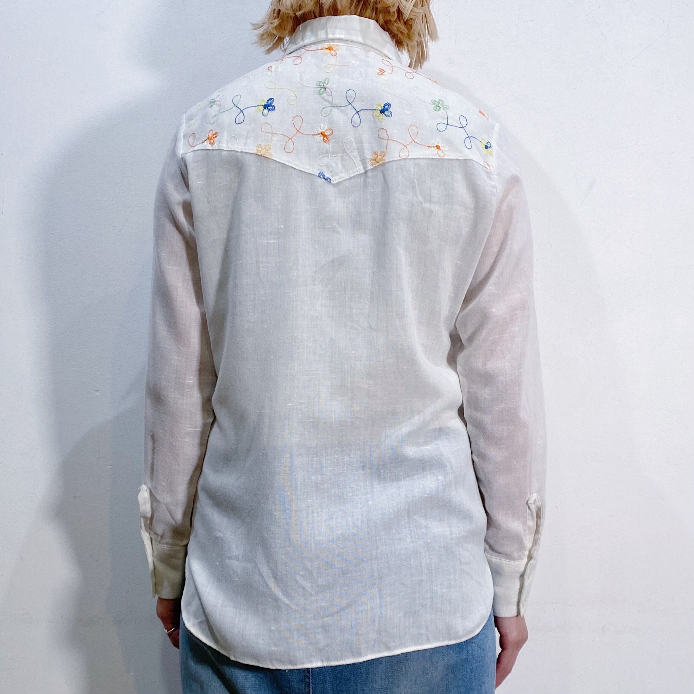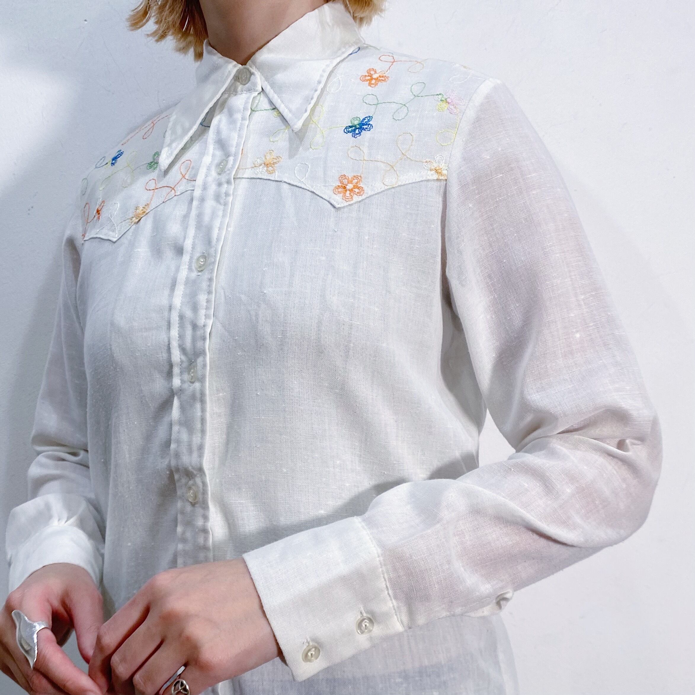 胸元とバックのお花の刺繍デザインがとても可愛い、70年代の長袖シャツです。