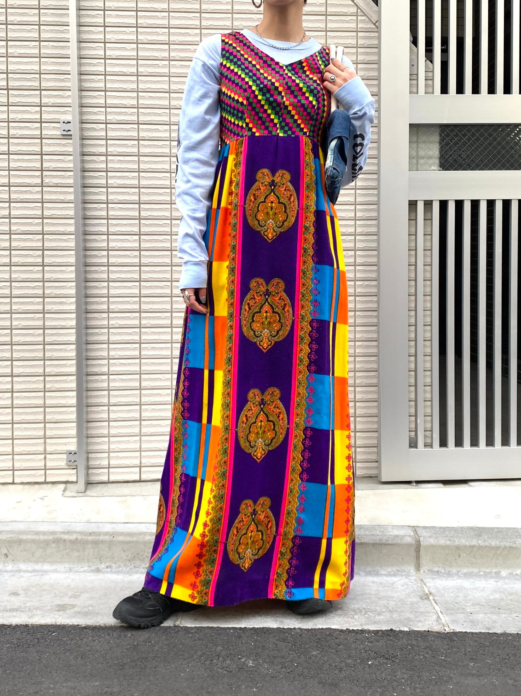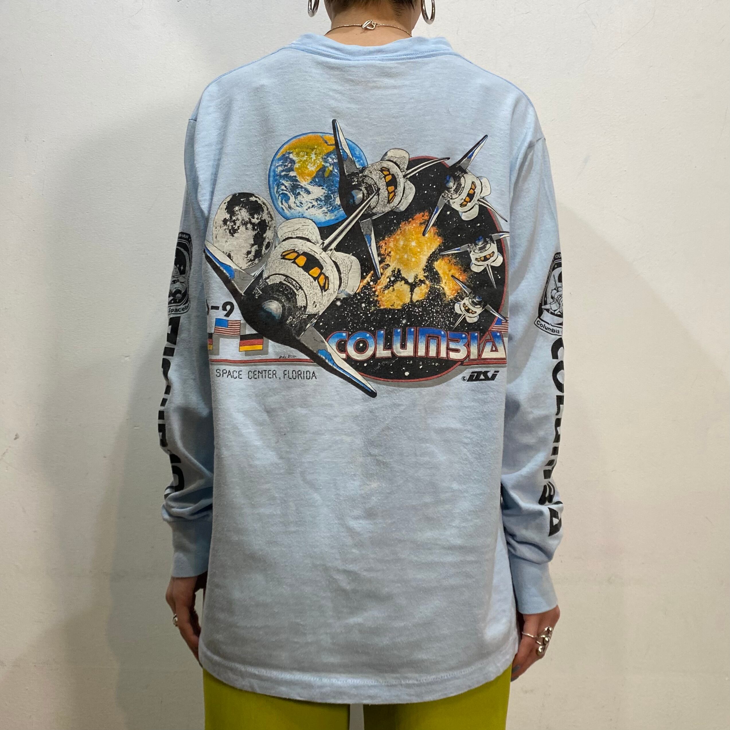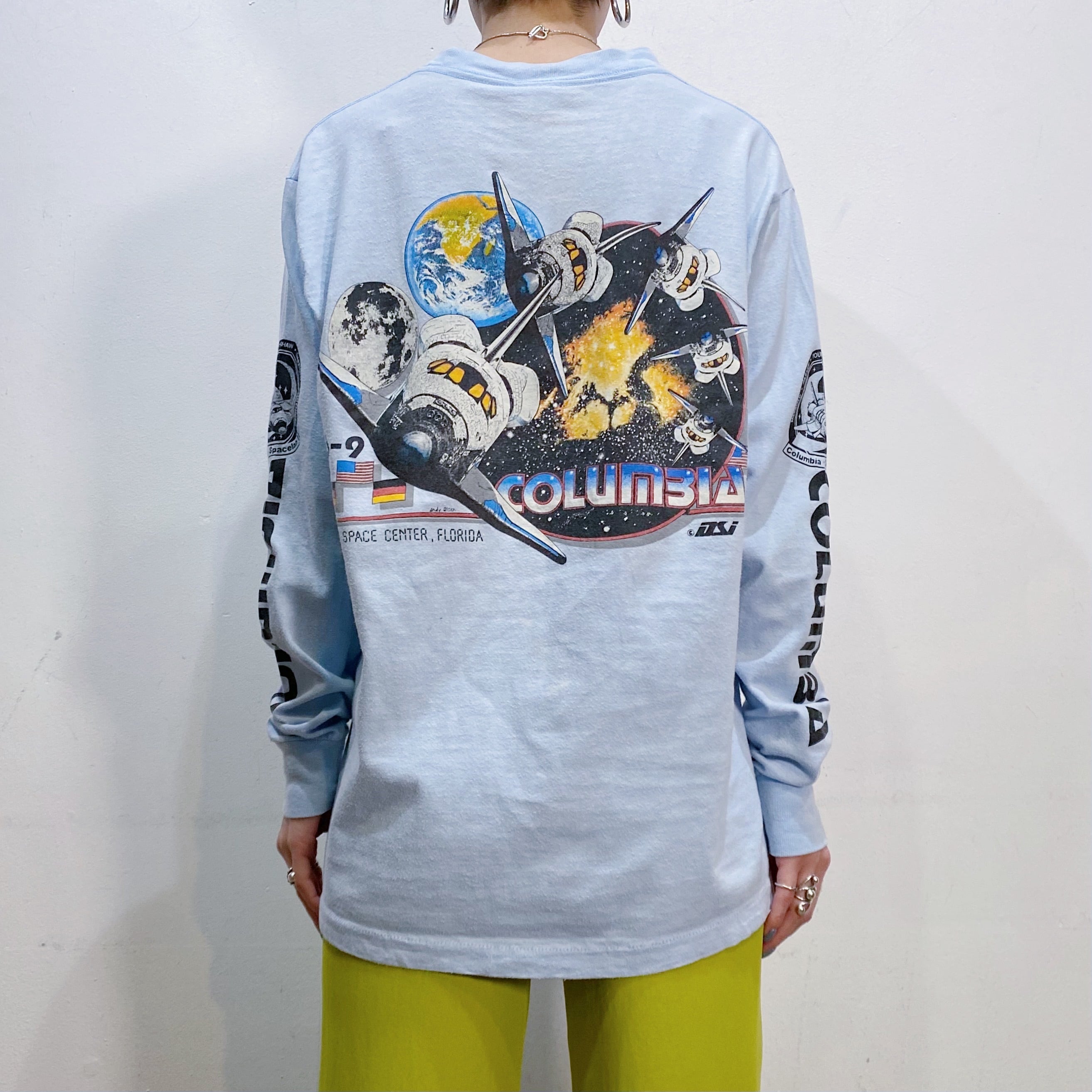 前後だけでなく、袖にまでプリントが入った、70sのロンTです。